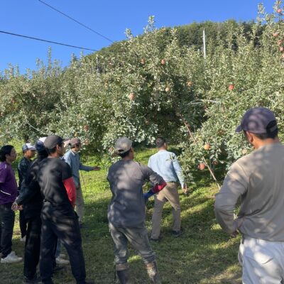 こちらはシナノスイート収穫真っ盛り、選果、出荷もしつつ、ふじの葉摘みを始めております。